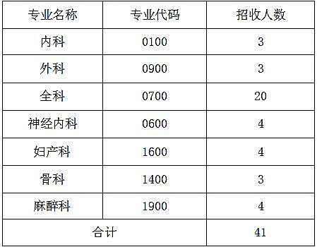 2024年,我院面向社会公开招收住院医师规范化培训学员41人。招收专业及人数如下:
