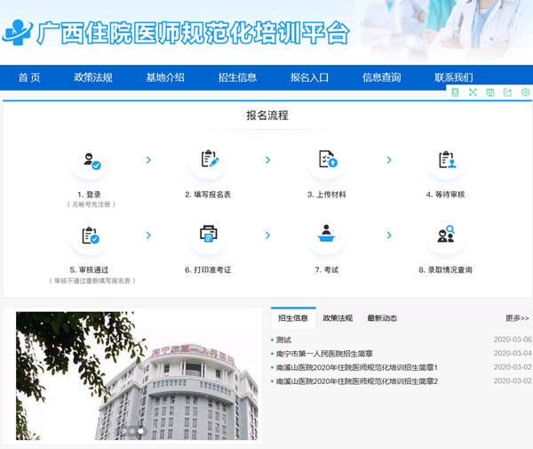 广西住院医师规范化培训平台首页:http://gxzp.gxws.cn