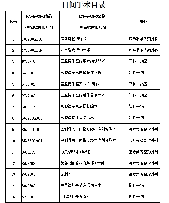 广西科技大学第一附属医院日间手术目录公示