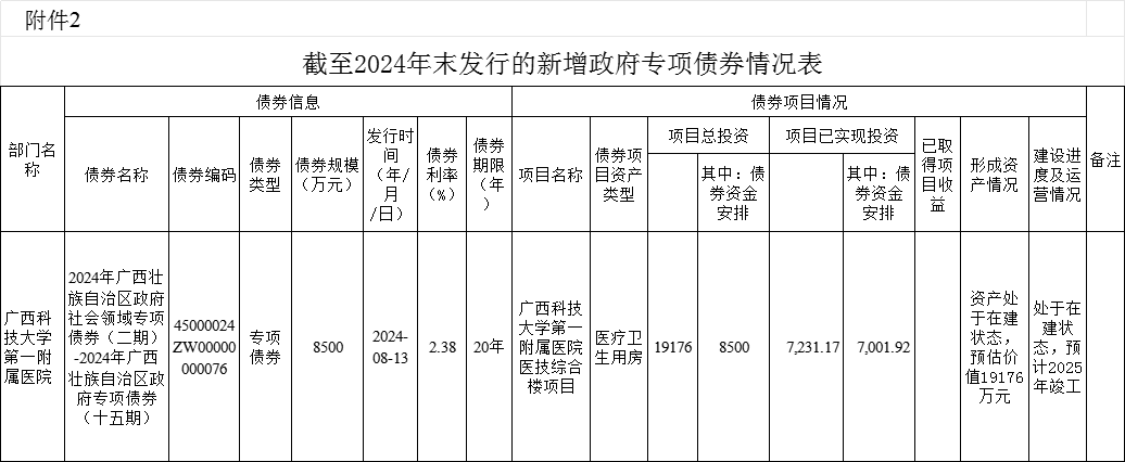 广西科技大学第一附属医院2023—2024年发行且在存续期内的新增政府债券相关情况公开