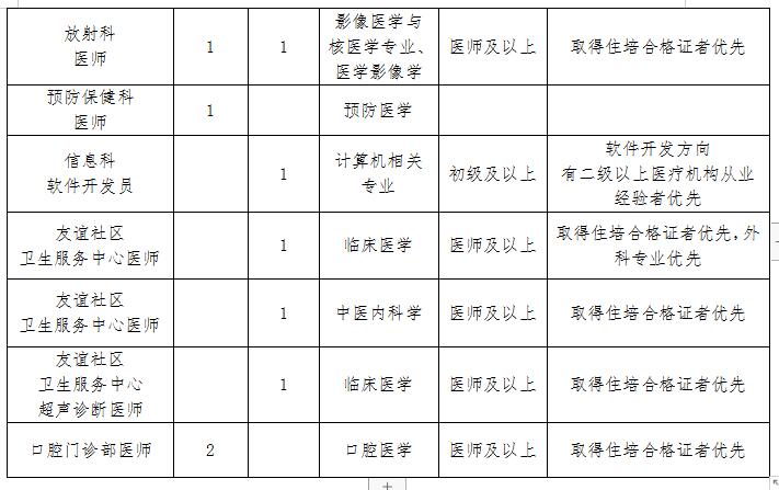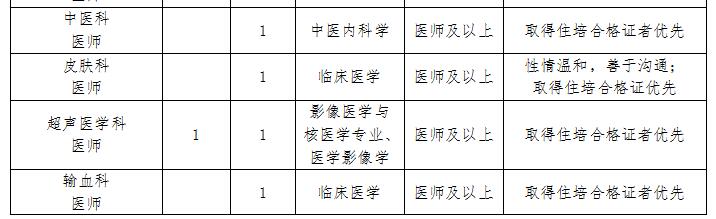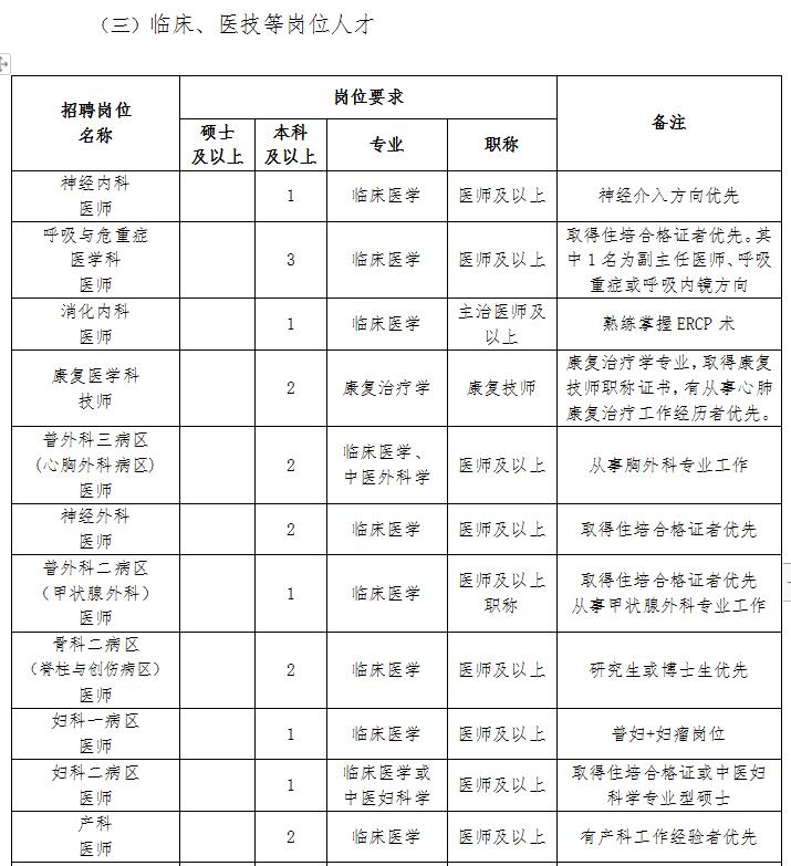 (五)应聘人员除具备以上基本条件外,还应符合招聘岗位所要求的资格条件;医院紧缺专业(麻醉、儿科、重症医学、病理、中医、心电诊断等)人才可适当放宽条件。