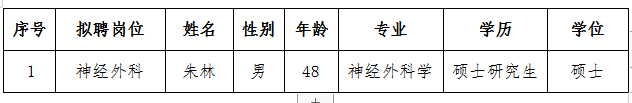 根据医院人员招聘制度,应聘神经外科岗位的朱林同志通过医院面试、试讲考核合格,经研究决定,同意聘用,现予以公示五个工作日,公示时间从2022年2月17日至2月24日,对拟聘用的同志如有异议,请以书面形式,并署真实姓名和联系地址,于2022年2月24日前邮寄或直接送至人事科,地址:柳州市跃进路126号实验综合楼二楼人事科,联系电话:0772-2514419。
