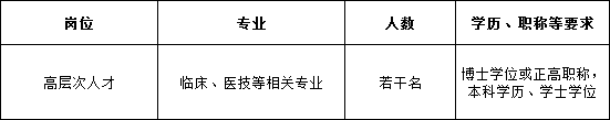 2.紧缺急需专业人才:麻醉科、儿科、重症医学科、急诊科、全科医学科、康复医学科、眼科、病理科、心脑电生理科等。