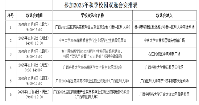(二)欢迎大家到高校双选会现场投递简历及报名。(参加校园双选会安排如下)