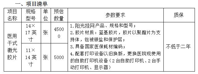 根据医院工作需要,我院对医用干式激光胶片进行市场价格调查,欢迎有资质的公司报名,于3个工作日内将相关资料提交到我院耗材科。