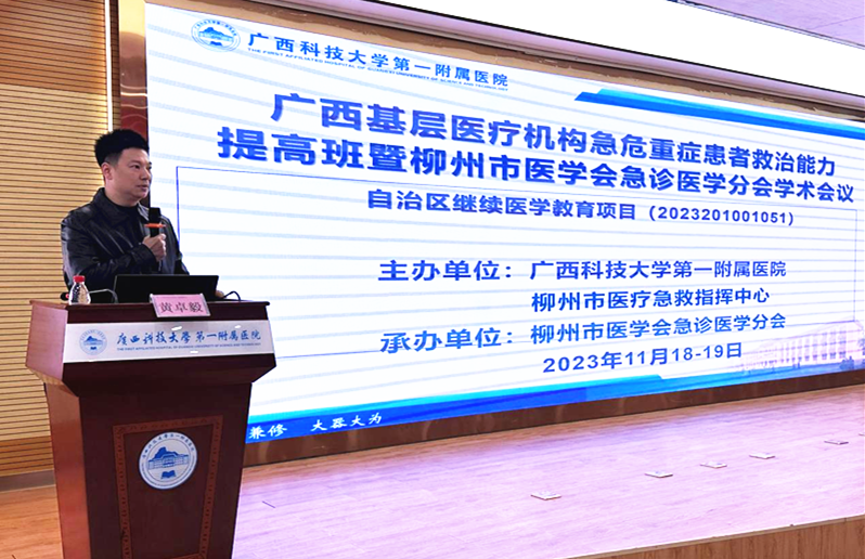 庞晓红书记致辞时表示,我院作为国家三级甲等医院、综合大学的教学医院,急诊科建设近年得到了长足发展,长年保持危重症患者抢救成功率在98%以上,5分钟内心脏骤停患者的心肺复苏成功率在50%左右,并顺利通过了国家级胸痛中心、卒中中心、柳州市一级创伤中心评审。尤其近年来急诊科专家团队不遗余力地对基层医师进行急救知识和技能培训、对提高全区基层医疗机构急救能力发挥了重要作用。此次急危重症救治能力提高班,以“五大中心”建设为切入点,在技术和管理层面上提供了交流学习平台,为进一步提升全区基层医疗机构急诊急救能力,保障人民健康和生命安全做出积极贡献。