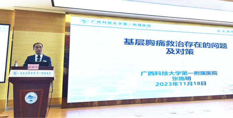 邀请了广西科技大学第一附属医院张施明教授、黄进瑜教授、韦建革教授分别做了《分水岭脑梗死》、《基层急性胸痛救治中的问题与对策》、《基层医疗机构急救的问题与对策》的专题授课。