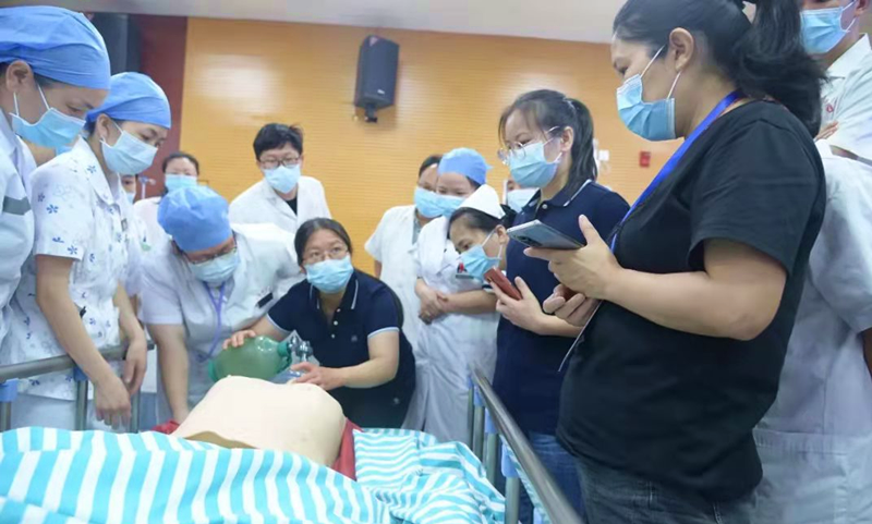 急诊科陈新副主任医师在融安县中医院指导团队心肺复苏演练