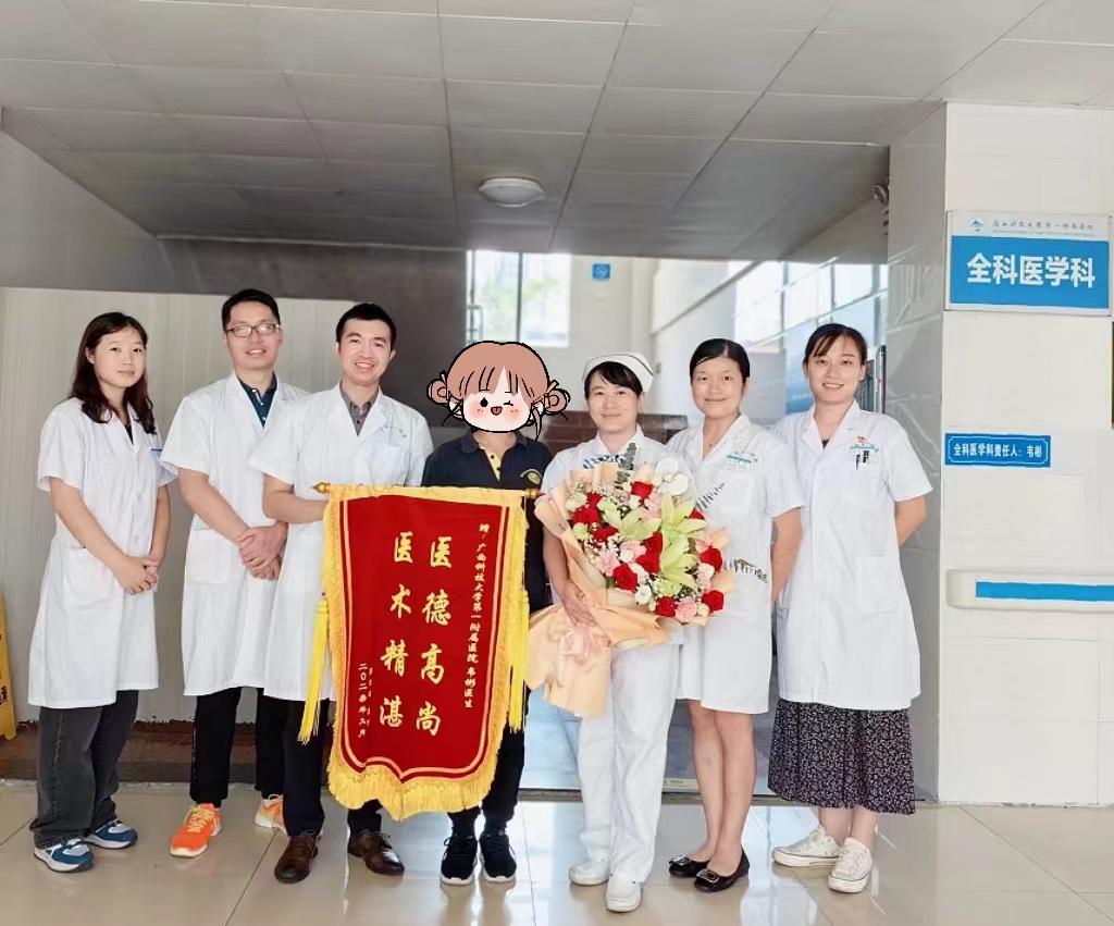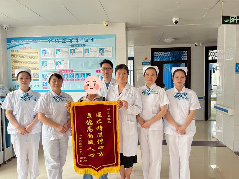 在院治疗期间,全科医学科的医护们不仅关注周大爷的病情进展,还关心他的心理状态和生活细节,在耐心解答周大爷疑惑的同时,也鼓励他保持乐观的心态,经过一段时间的精心治疗,周大爷从鬼门关里被救了回来。病情好转出院后,全科医学科的医护团队们也定期对他进行病情的随访和生活的问候,并且指导周大爷的家人如何在家中照顾他。周大爷的身体状况逐渐好转,精神状态也变得更加积极。为表达心中的感激之情,周大爷特意定制了一面锦旗。