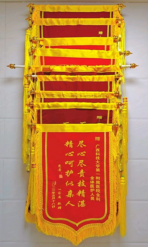 每一面锦旗的背后,都是一个感人至深的故事。全科医学科的医护人员们,用他们的专业知识、精湛技艺和无私奉献,为患者驱散了病痛的阴霾,带来了康复的希望。他们始终坚守在医疗一线,用自己的实际行动诠释着医者仁心的真谛。每面锦旗,不仅是对我们工作的肯定,更是一种鞭策和激励。它提醒我们,作为医护人员,我们肩负着救死扶伤的神圣使命,必须时刻保持对医学的敬畏之心,不断提高自己的专业技能和服务水平。同时,我们也要继续发扬医者仁心的精神,用更多的爱心和耐心去关爱每一位患者,让他们在医院的每一天都能感受到温暖和希望。