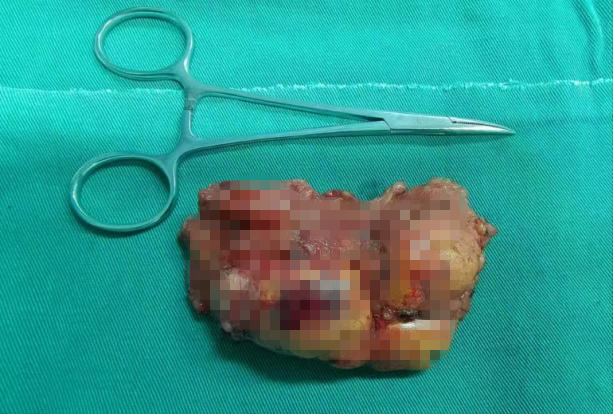 手术由泌尿外科吴尔岸主任医师主刀,考虑患者肿瘤偏大,瘤体与肾动静脉、胰尾、脾脏等关系密切,选择经腹入路,整个医师团队密切配合,依次分离显露出肾上腺及周围血管脉并将其夹闭,完整切除肾上腺及其肿瘤,手术过程少量出血,术中患者血压波动巨大,收缩压最高达240mmHg,最低达60mmHg,在麻醉科曾金主任团队努力配合下,手术过程有惊无险,得以顺利完成。术后患者恢复良好,康复出院。病理结果为嗜铬细胞瘤。