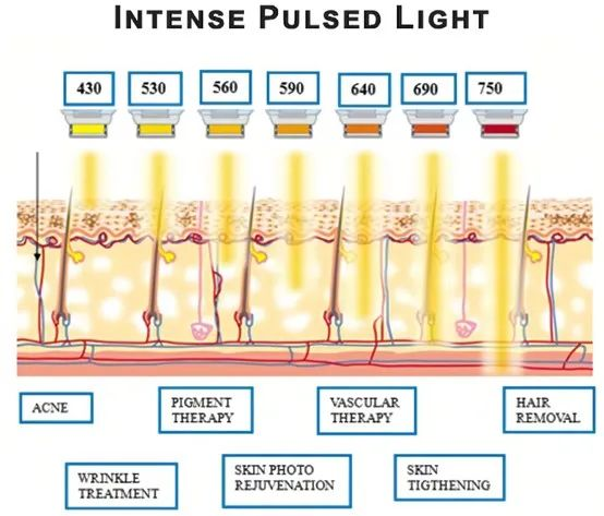 IPL(intense pulsed light)强脉冲光,又称光子嫩肤,是一种非剥脱性动力疗法,它使用非相干强脉冲光技术(IPL)进行低能量密度的非剥脱方式的嫩肤治疗。强脉冲光发出的光谱范围为420-1200nm,其较长的波长能使皮肤的光损伤和老化现象明显改善,较短波长可治疗皮肤色素性和血管性病变。