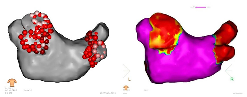 此例手术的患者75岁,长期受房颤的困扰,在活动时或者休息时感到呼吸困难、心慌、头晕眼花、胸部有压迫感甚至疼痛。李杰主任带领团队对病人的情况进行综合评估,认为该例病人因为房颤发作导致左心房增大进而导致二尖瓣重度返流,服用抗心律失常药物无法抑制房颤发作,且长期房颤有发生卒中等并发风险,对患者进行安全有效的节律控制是理想治疗的策略,早期节律控制策略可有效减少心房重构,预防房颤相关死亡、心衰、卒中,且在延缓房颤进展、减少房颤相关症状方面具有重要的潜在作用,决定对该例患者进行房颤脉冲消融术,让患者恢复窦性心律。