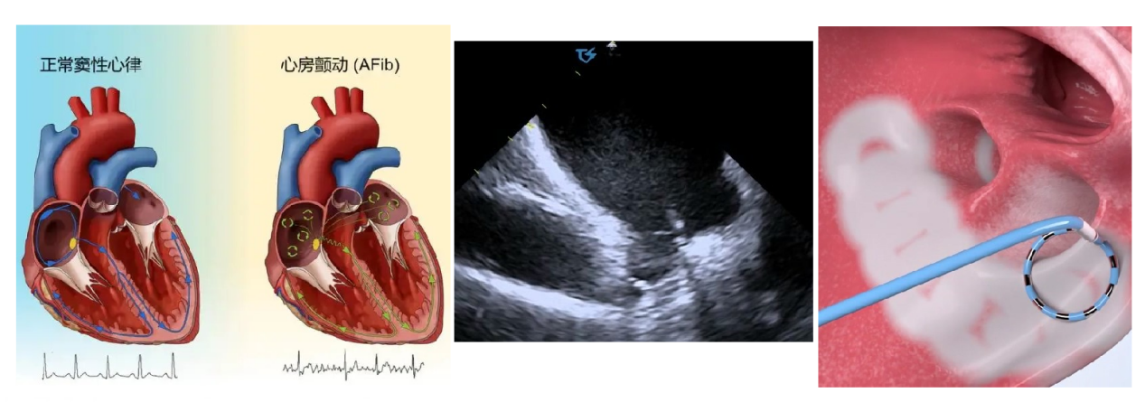 心房颤动(简称房颤)是临床中最常见的一种心律失常,发病率随着年龄的增加而逐渐增高,显著增加患者死亡、卒中、心力衰竭(心衰)、认知功能障碍和痴呆风险,严重影响患者生活质量。心腔内超声导管引导下的脉冲消融是一种微创手术,通过在心腔内使用超声导管,医生能够实时监测和构建心脏的三维结构,精确地定位到引起房颤的异常电生理活动区域。