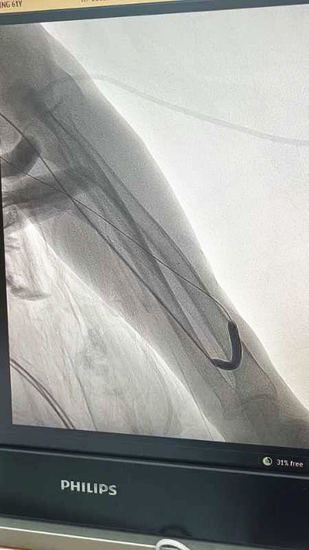 市民刘叔是我院肾内风湿免疫科一位长期依赖血液透析的终末期肾病患者,近日,由于其内瘘出现狭窄,导致透析血流量不足,无法正常完成透析。在科室主任吴杰的带领下,科室血管通路团队对患者病情和血管情况进行了详细检查和评估,立即实施动静脉内瘘球囊扩张术,重建患者生命线。