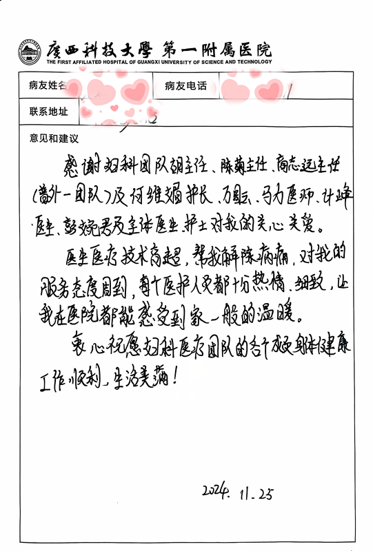 术后患者恢复良好,目前已康复出院。患者及家属也给予我院医护团队高度表扬。