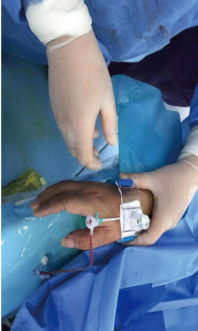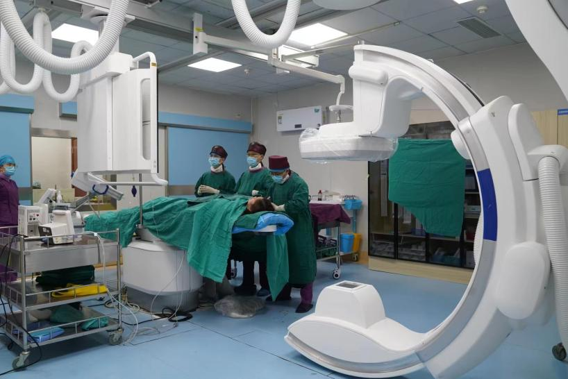 2023年起心血管内科联合神经内科开展一站式心脑血管介入诊疗,传统的心脑联合造影从股动脉路径进行,患者卧床24小时,痛苦较大,我院开展远端桡动脉入路行脑血管造影及冠脉造影检查,创伤小、恢复快。首先由心内科医师实施远端桡动脉穿刺,并完成冠脉造影术,再由神经内科医师经同一路入行全脑血管造影。整个介入手术过程仅耗时一个小时左右,患者清醒,无任何痛苦,术后患者只在手部虎口处有一个小小的穿刺点,无任何不适,术后当天便可正常活动,真正体现了一站式服务、微创、快速、安全、准确的救治理念。