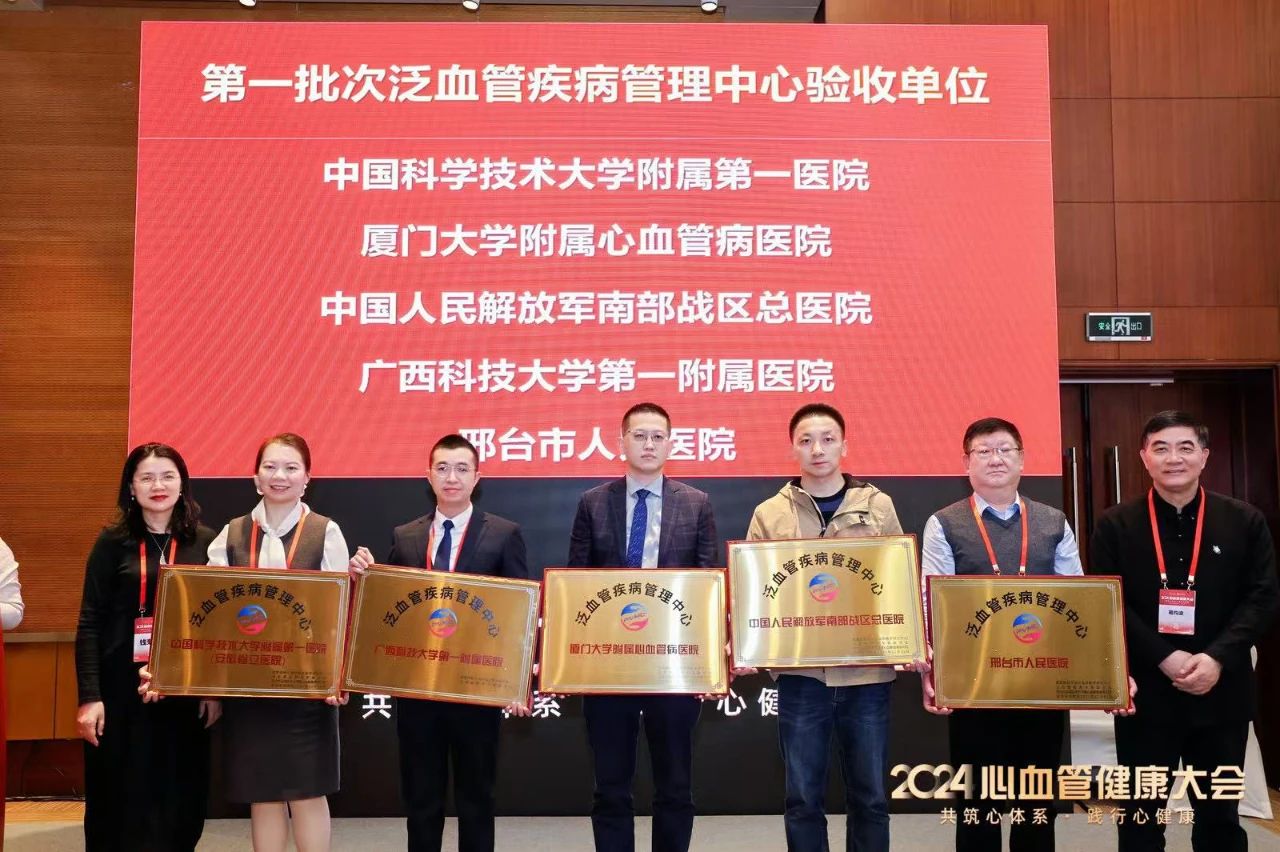 12月7日,在北京国家会议中心举行全国泛血管疾病管理中心授牌仪式,由中国科学院院士葛均波教授,复旦大学附属中山医院钱菊英教授授牌,广西科技大学第一附属医院正式成为全国第一批、广西第一家泛血管疾病管理中心,标志着医院在促进“以治疗疾病为中心”向“以患者为中心”的诊疗模式转化上再上新台阶。