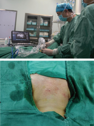 甲状腺微波消融治疗是运用冷循环微波技术,在超声设备的引导下,以直径1.4毫米的探针精准刺入甲状腺结节,发出高频微波,在不损伤正常组织的情况下,让病变组织产生生物高热效应,使结节、囊肿组织在热凝过程中脱水、凝固、凋亡、坏死,最后被机体自然吸收或排出,从而达到治愈甲状腺部位结节、肿块的目的,具有创伤小、时间短、不留疤痕、安全精确,术后无颈部活动障碍及吞咽不适的优点。可以很大程度地避免因甲状腺周围血管、神经等重要组织器官损伤而导致出血、声音嘶哑等并发症,是世界卫生组织推荐的甲状腺良性病灶微创治疗技术。