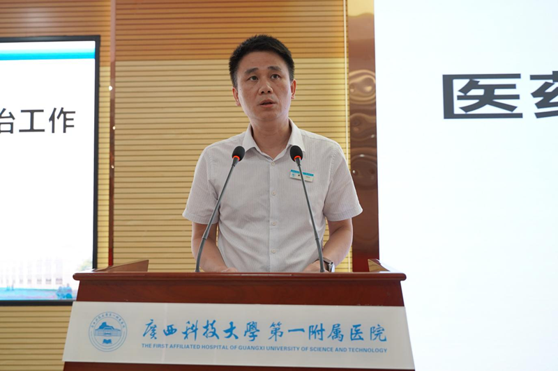 医院党委副书记、院长覃天进行再动员再部署。他指出,加强医药领域反腐工作是促进医药行业高质量发展的重要内容,是完善医药治理体系建设的重要组成部分。多年来,国家卫生健康委会同相关部门不断加强行业作风建设,将体系构建、制度建设与落实廉洁从业九项准则等相结合,坚决纠治行业不正之风,取得了显著改善。覃天要求大家高度重视此次集中整治的紧迫性、重要性和严峻性,严肃查摆问题隐患,集中精力搞好学科建设,为医院高质量发展做贡献。