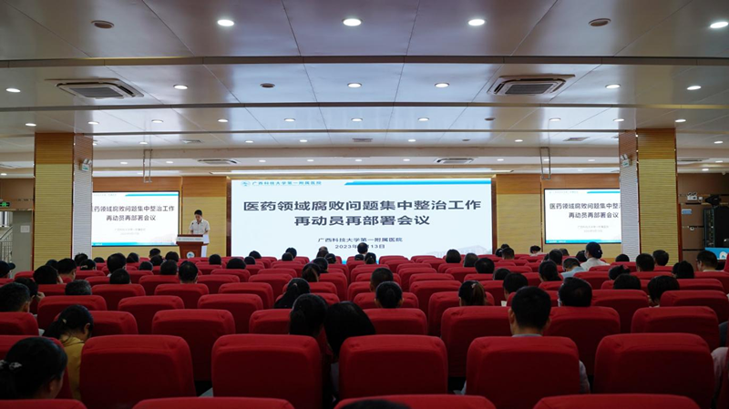 9月13日下午,广西科技大学第一附属医院在医院学术报告厅召开医药领域腐败问题集中整治再动员再部署会议。会议目的是进一步统一思想提高认识,在全院范围内形成积极配合集中整治的自觉氛围。医院全体班子成员、中层干部及护士长共计150多人参加会议。