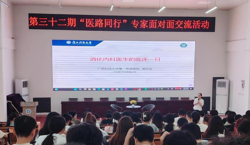 10月14日,广西科技大学第一临床医学院成功举办“师生汇”暨第三十二期"我与专家面对面"活动。活动以“消化内科医生的临床一日”为主题,特邀我院消化内科主任潘丽莹担任主讲嘉宾。 潘丽莹老师结合自身多年的临床经验,运用丰富的案例图片与视频资料,围绕“诊断案例反思”“医患沟通艺术”及“科研与临床平衡”三大维度,向同学们系统讲解了消化内科的典型临床案例,深入剖析了医生的职业特质,进一步增强了医学生的职业使...