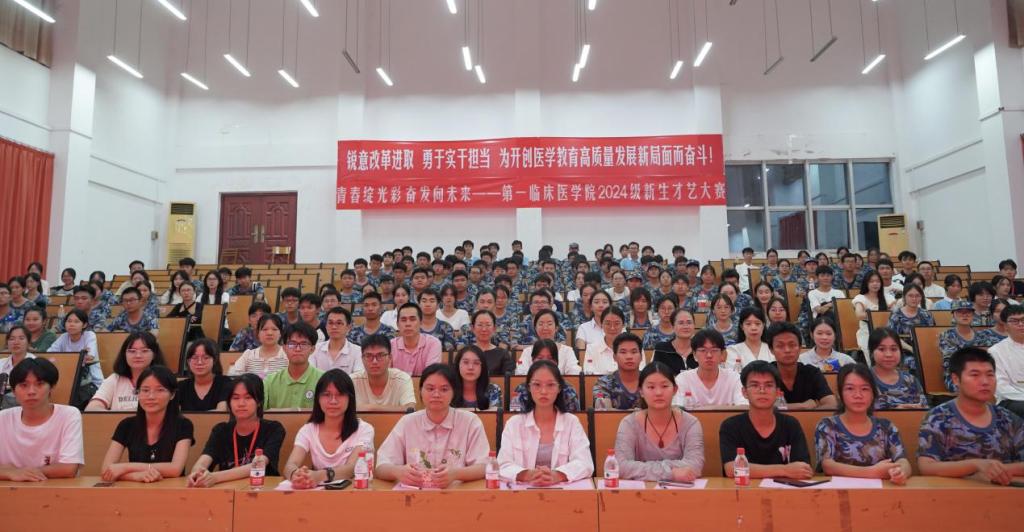 为促进新生之间的交流,展现当代大学生的风采与创造力,营造奋发向上的校园文化氛围,广西科技大学第一临床医学院于10月13日晚在柳石校区1111报告厅举办红歌合唱比赛暨新生才艺大赛。党委副书记何曲波出席活动,学工办副主任、团委副书记许璐,全体辅导员及新生班主任参加活动。集体合影党委副书记何曲波 本次大赛以“青春绽光彩,奋发向未来”为主题,共13个节目参赛,比赛现场气氛热烈,座无虚席。比赛在满怀激情地合唱《...
