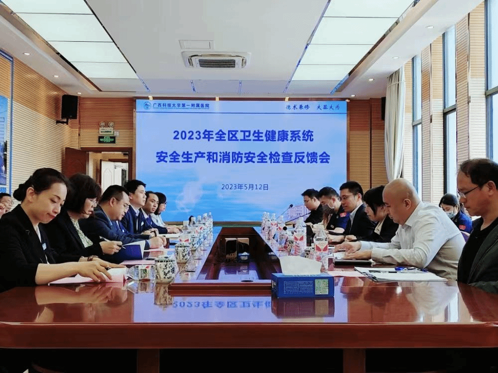 5月12日上午,自治区卫生健康委法规处副处长孔令乾带队一行8人,到广西科技大学第一附属医院进行安全生产和消防安全督导检查。医院党委书记庞晓红,分管副院长闭雄杰等班子成员和相关职能科室负责人现场迎接检查。检...