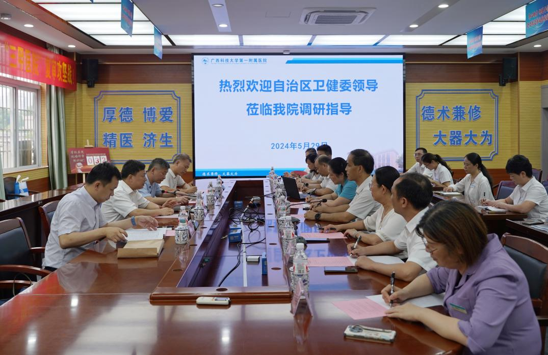 5月29日下午,自治区卫健委党组成员、副主任黎君君一行四人到我院调研座谈。学校党委常委、副校长秦小云出席调研座谈,我院党委书记庞晓红,党委副书记、院长覃天等陪同。庞晓红主持座谈会。调研座谈会黎君君秦小云黎君君(左三)、秦小云(左二)在我院泛血管疾病管理中心调研 座谈会上,黎君君一行听取了我院的工作汇报。黎君君传达了自治区卫健委党组关于进一步加大对委管医院的关注和支持的相关指示,并强调,委管医院...