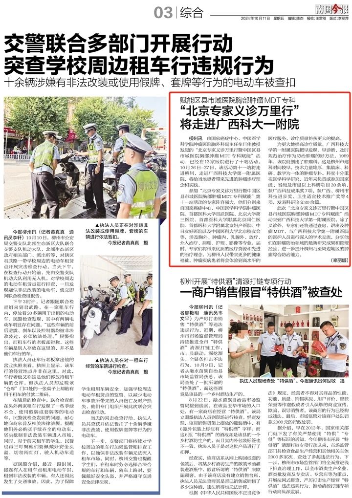 由国家癌症中心、中国医学科学院肿瘤医院胸外科副主任牟巨伟教授发起的“北京专家义诊万里行曁中国区县市域医院胸部肿瘤MDT专科赋能”活动已开展9站,先后进入了11家医院。10月26日至27日,此活动第10站将走进柳州,走进广西科技大学第一附属医院(以下简称“广西科大一附院”),给当地患者带来先进的肿瘤诊疗理念和实践。 参加第10站“北京专家义诊万里行曁中国区县市域医院胸部肿瘤MDT专科赋能”活动的专家阵容强大,他们...