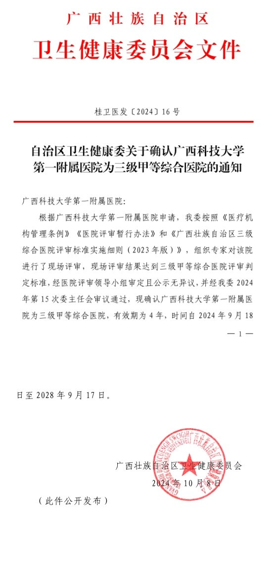 【喜报】广西科技大学第一附属医院通过国家三甲医院复审