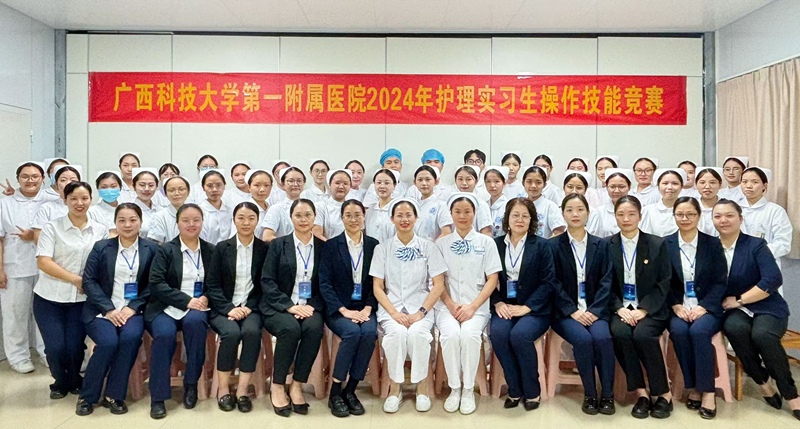为进一步夯实护理实习生临床操作技能,展示新时代护理实习生良好的精神风貌,全面提升护理教学质量,2024年10月31日,广西科技大学第一附属医院护理部在医院临技中心举办护理实习生技能大赛。技能大赛合影农宝兰 赛前,护理部副主任农宝兰发言。她说,此次比赛的目的是为了提高实习同学的临床实训技能及临床思维能力,促进同学间的相互沟通及配合,希望大家在比赛中沉着冷静,把自己精彩的一面展现出来。选手风采 此次大赛...