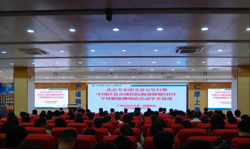 10月27日上午,“北京专家团义诊万里行暨中国区县市域医院胸部肿瘤MDT专科赋能”第十一站柳州站活动,在我院开展了为期半天的专家讲座及业务交流。由国家癌症中心与中国医学科学院肿瘤医院胸外科副主任牟巨伟教授领衔的多位国内顶尖肿瘤相关专家,为我院医务人员带来了肿瘤学科最前沿的学科知识,同时深入一线进行专家查房并开展MDT病例讨论,为广大群众带来健康福音。我院党委书记庞晓红、党委副书记、院长覃天等所有在家院...