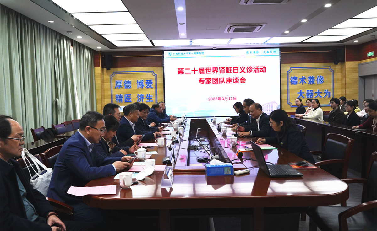 3月13日是第二十个“世界肾脏日”,今年的主题是:您的肾脏还好吗?早期发现,保护肾脏健康!为响应本次世界肾脏病日号召,中国医师协会肾脏内科医师分会会长陈香美院士带领中国医师协会肾脏内科医师分会全体委员齐聚柳州。3月13日下午,由中国医师协会肾脏内科医师分会副会长邵凤民带队的11位国内有名的专家莅临我院,开展“世界肾脏日”系列活动。我院党委书记庞晓红、党委副书记、院长覃天等出席活动。座谈会现场邵凤民庞...