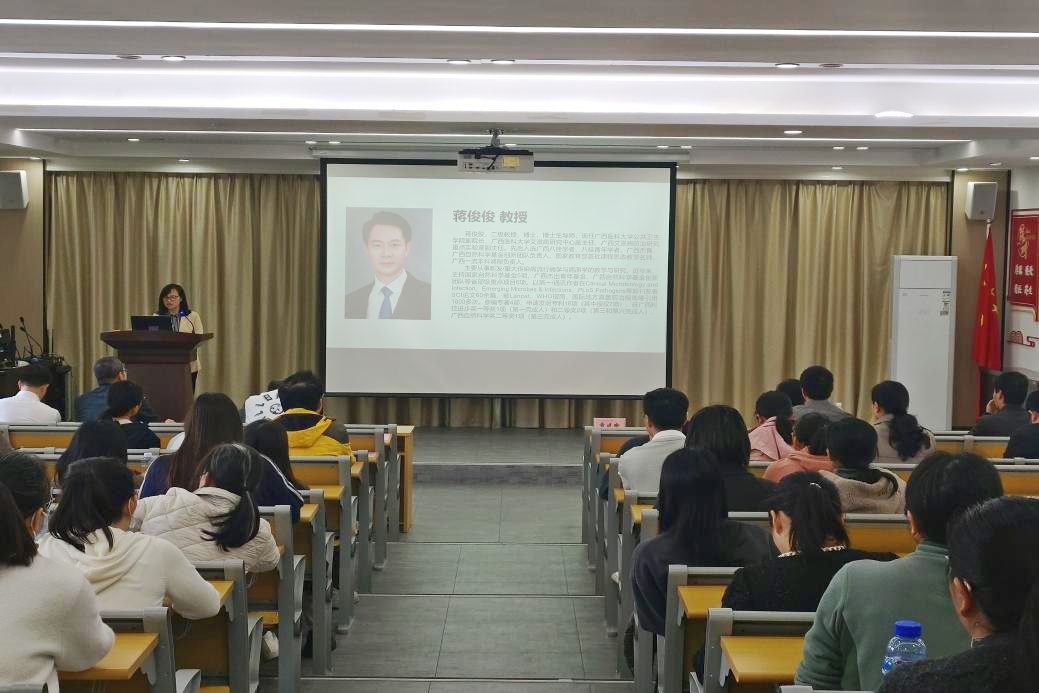 为系统提升医院科研创新能力,强化学术氛围建设,助力科研人员精准把握项目申报要点,2025年12月19日下午,广西科技大学第一附属医院(第一临床医学院)于党员活动室成功举办“科研项目选题思考与申报体会”专题讲座。本次活动特邀医学领域知名专家蒋俊俊教授担任主讲。医院党委副书记、院长黄进瑜主持活动。吸引了众多科研骨干、临床教师及学生积极参与,现场学术交流气氛热烈。 讲座伊始,黄进瑜院长对蒋俊俊教授作了介绍...