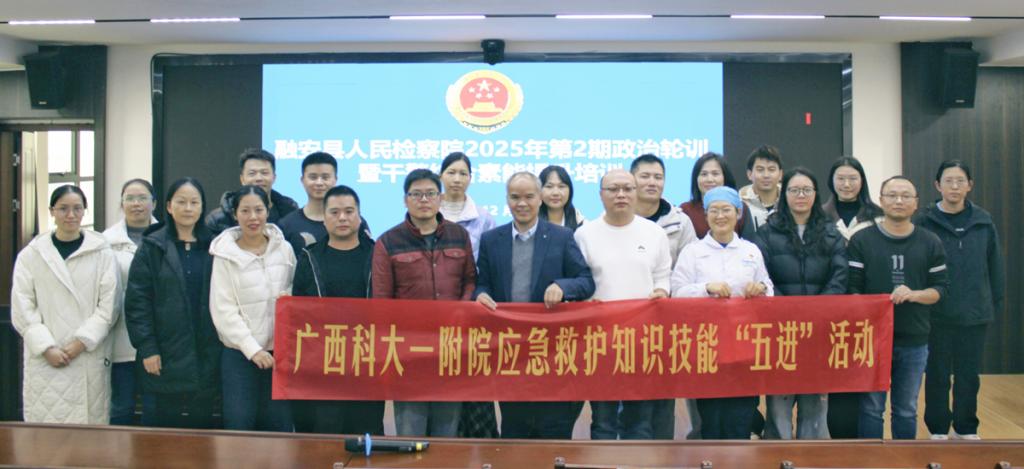 2025年12月19日上午,广西科技大学第一附属医院首席急救医学专家、急诊科技术主任韦建革教授及急诊科麦海仙主管护师,应融安县人民检察院邀请为融安县人民检察院全体职工开展《猝死——不容忽视的职业健康问题》专题讲座。 本次培训,围绕“猝死预防与公众急救意识提升”展开,通过多个真实案例强调了高血压、高血脂、肥胖、抽烟、熬夜、过度劳累、情绪激动等不良生活习惯对健康的严重危害。重点剖析了猝死的诱因、前兆症状...