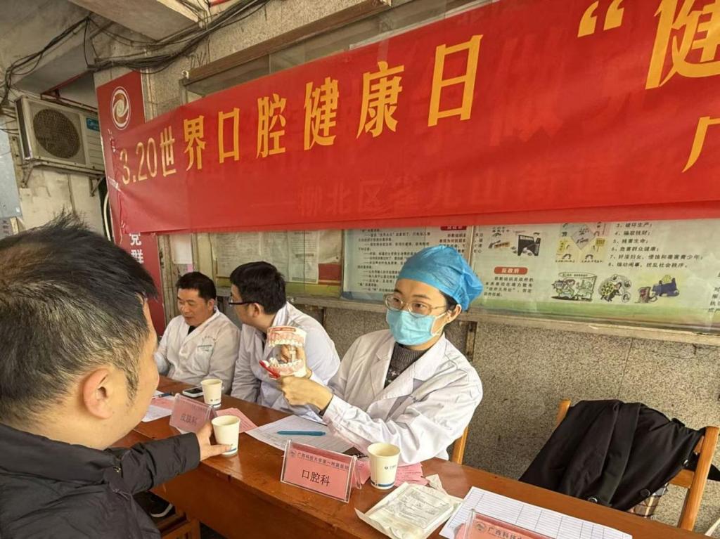 2026年3月20日“世界口腔健康日”,为深入贯彻落实《健康中国行动(2019-2030年)》指导方针,积极响应FDI世界牙科联盟、中华口腔医学会的号召,近日,广西科技大学第一附属医院口腔门诊部到柳北区雀儿山街道北雀社区火电大院开展了以“健康口腔,幸福生活”为主题的健康公益科普活动。 活动现场,口腔门诊部的医师为前来咨询的居民提供免费口腔检查、耐心解答居民关于龋齿、牙周病、牙齿敏感、缺失牙修复等常见问题,并根据...