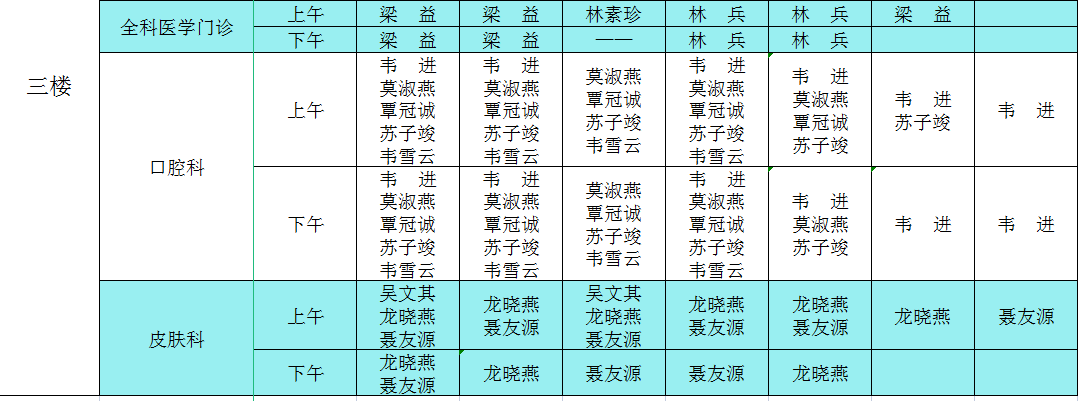 2021年12月6日——12日门诊医生出诊信息表