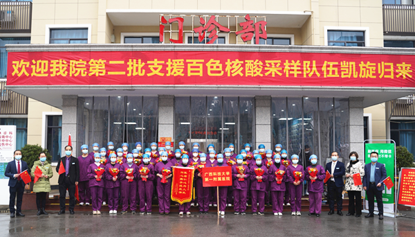 2月18日,广西科技大学第一附属医院支援百色第一批核酸采样队队员圆满完成任务,跟随柳州市支援百色靖西抗疫医疗队平安归来。经过简单修整后他们进入指定地点进行隔离,至此,我院派出的80名核酸采样医疗队员全员凯旋...