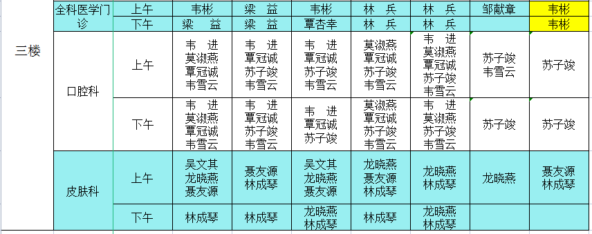 2022年5月9日-2022年5月15日门诊医生出诊信息表