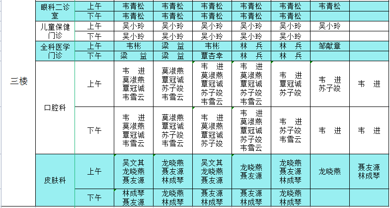 2022年5月23日-5月29日门诊医生出诊信息表