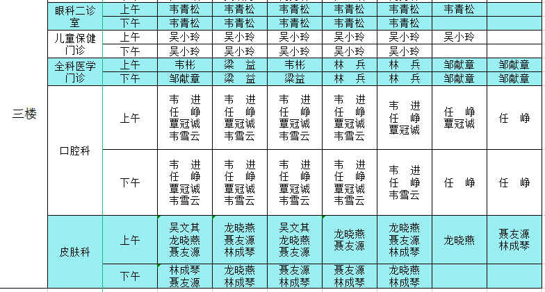 2022年6月6日-6月12日门诊医生出诊信息表