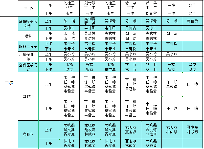 2022年7月18日-7月24日门诊医生出诊信息表