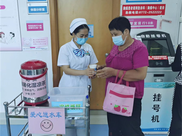 酷暑节气,一辆承载着满满爱心的送水车,在广西科技大学第一附属医院门、急诊候诊区巡回,为前来就诊的市民朋友提供免费消暑化湿凉茶。“爱心送水车”巡回门、诊急诊区域送水凉茶放置在门诊大厅凉茶深受市民朋友欢迎...