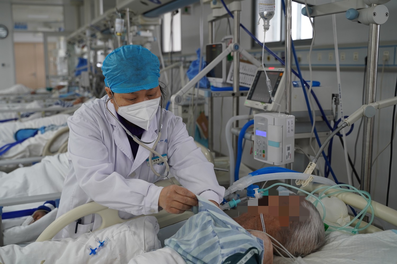 2023年1月3日晚上11时,广西科技大学第一附属医院重症医学科,一位因感染新冠病毒而引起昏迷并心肺功能衰竭的老人被送了进来,不到十分钟另一位因新冠病毒而引起“白肺”的老人又被送了进来,医护人员小跑着穿梭在两...