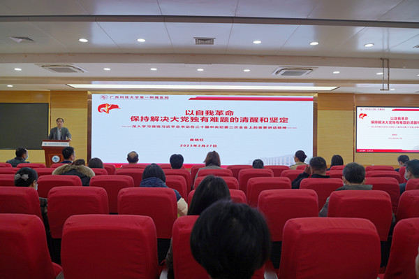 2月16日,广西科技大学第一附属医院创伤中心工作推进会在该院学术报告厅召开。党委副书记、院长覃天就创伤中心推进工作作指示,会议由党委委员、副院长张施明主持。全院中层干部、护士长等150多人参加会议。 覃...