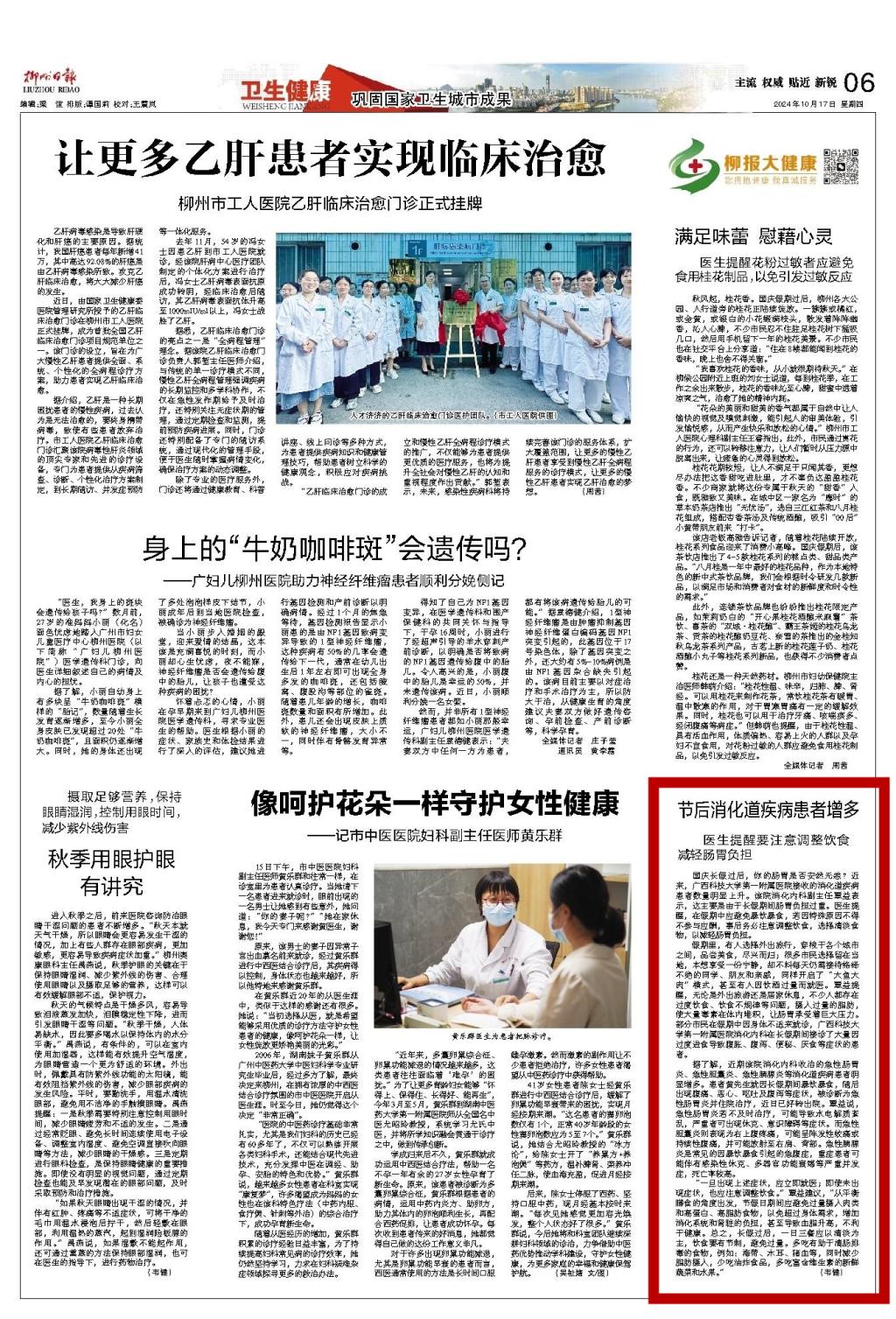 【媒体关注】《柳州日报》刊登《节后消化道疾病患者增多 医生提醒要注意调整饮食减...